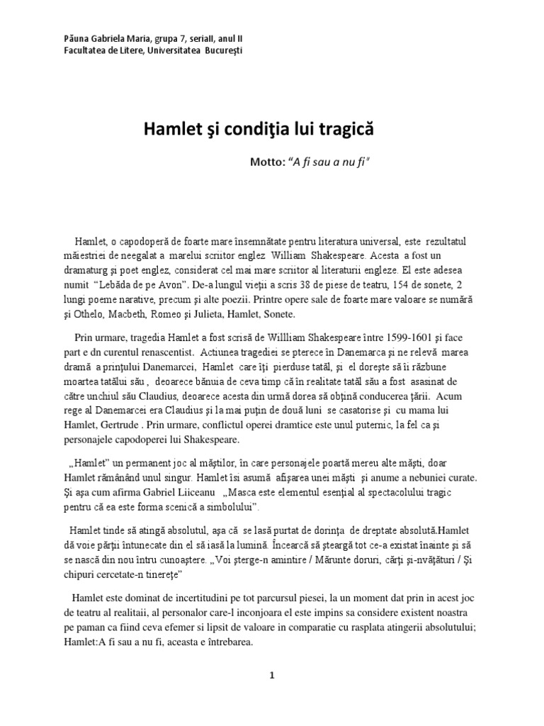 Student La Litere A Fi Sau A Nu Fi William Shakespeare