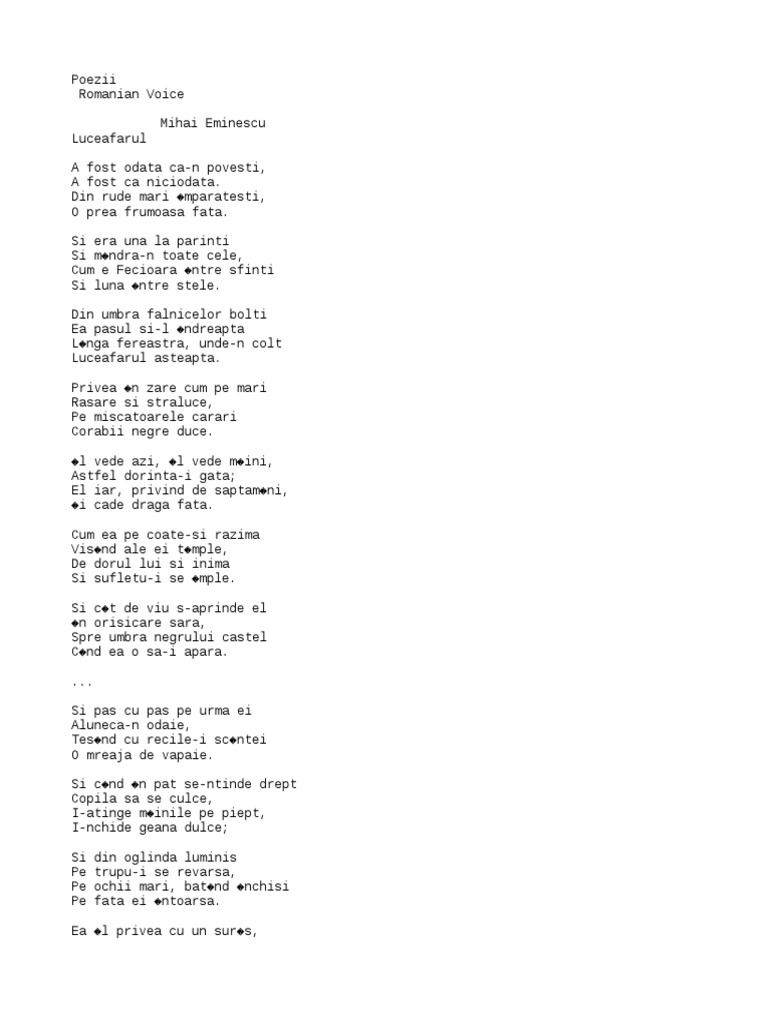 A fost odata ca n povesti a fost ca niciodata din rude mari imparatesti o prea frumoasa fata. Click pe link pentru a descarca fragmentul audio. De atata dor. Si era una la părinti si mindra n toate cele cum e fecioara intre sfinti si luna intre stele.