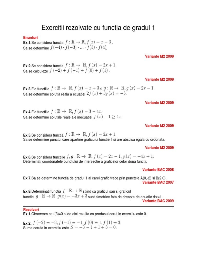 Exercitii Rezolvate Cu Functia De Gradul 1 Enunturi