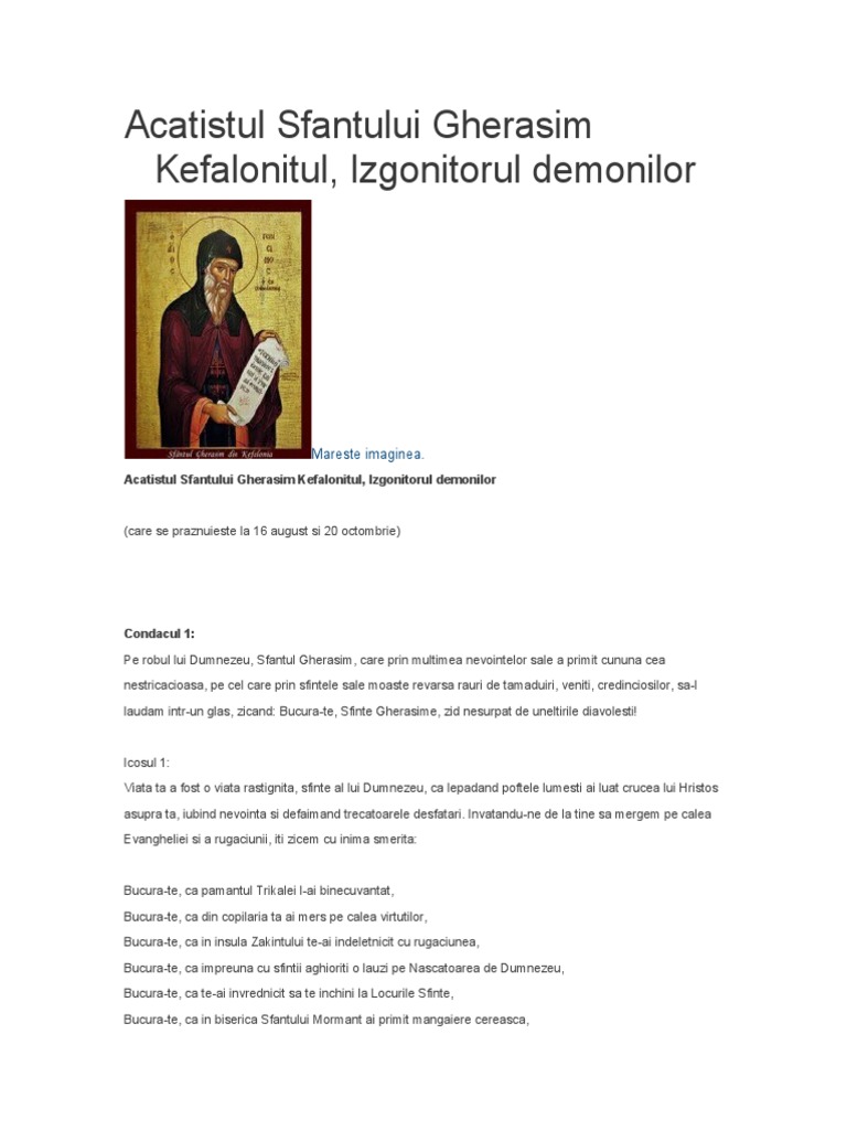Acatistul Sfantului Gherasim Kefalonitul Izgonitorul Demonilor și Vindecătorul Bolilor Psihice 16 Aug și 20 Oct Mulțumesc