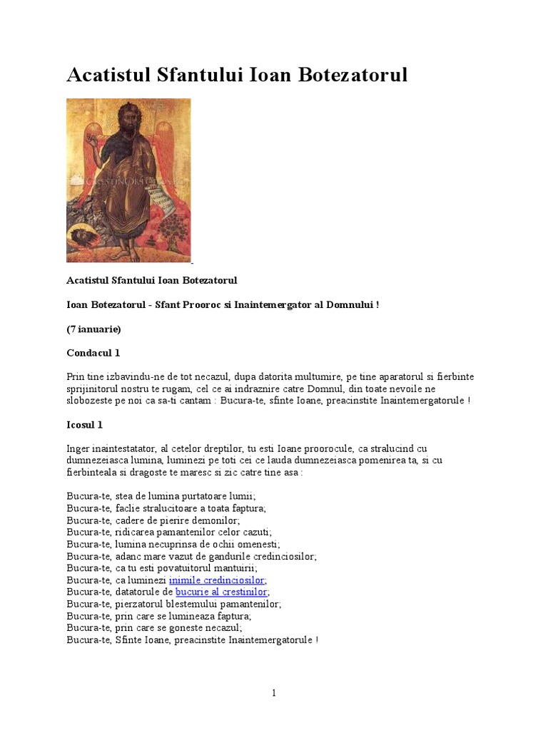 Acatistul Sf Ioan Botezatorul Pdf