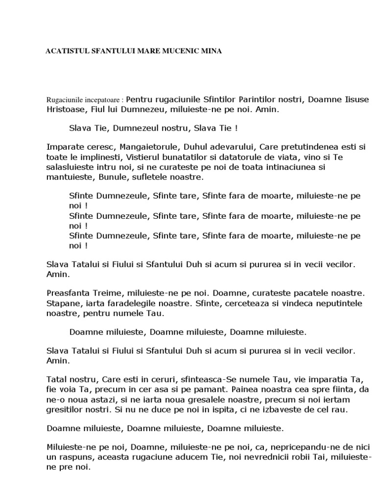 Acatistul Sf Mina Cu Rugaciuni Incepatoare
