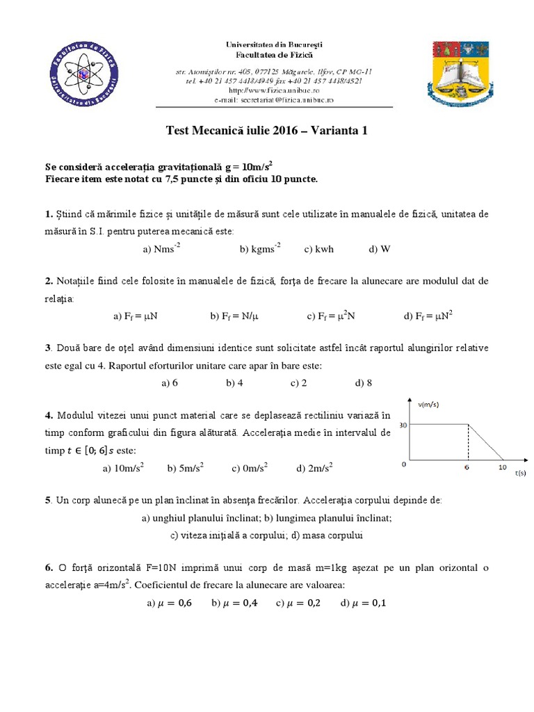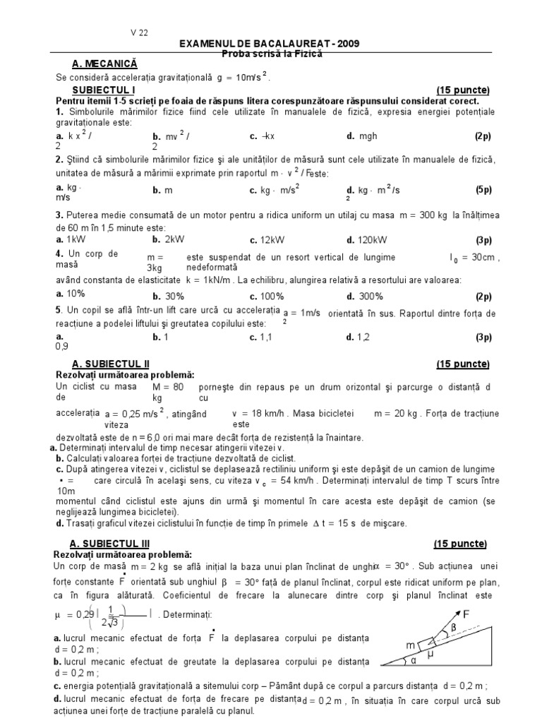 A Mecanică Subiectul I