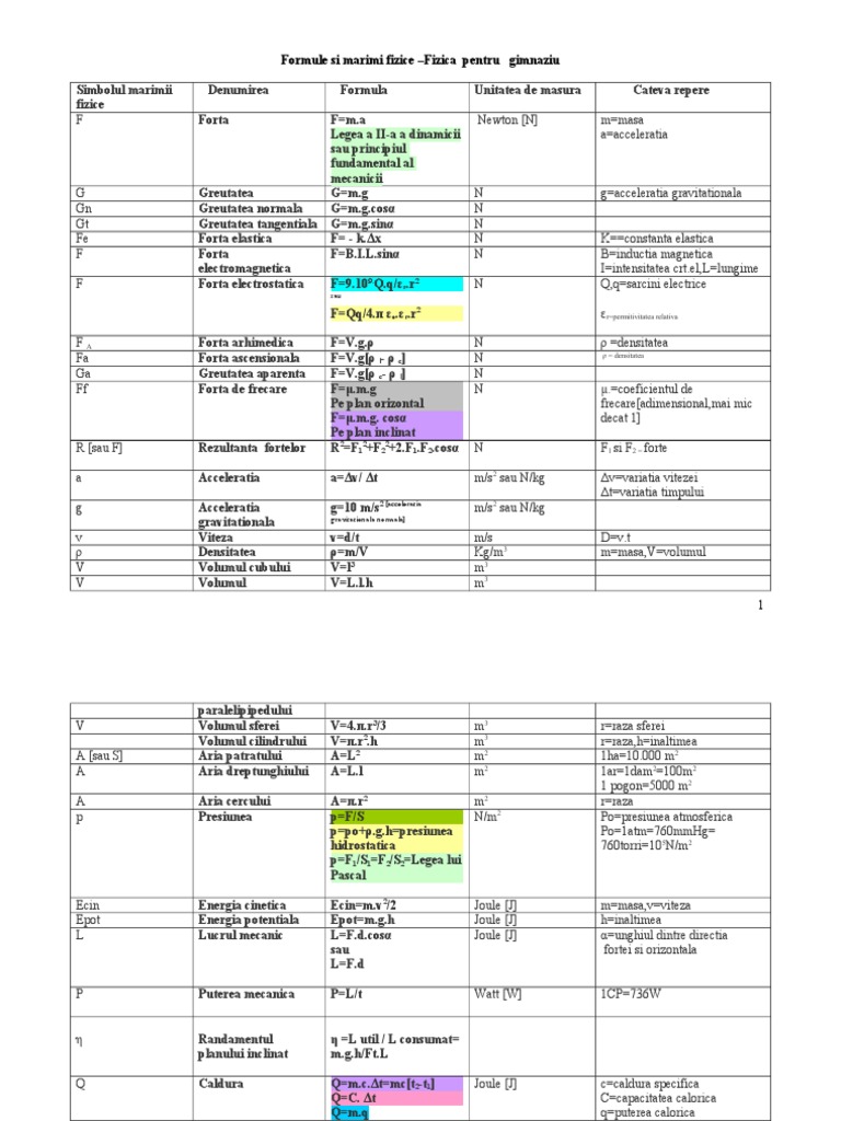 Formule Fizica Pentru Gimnaziu