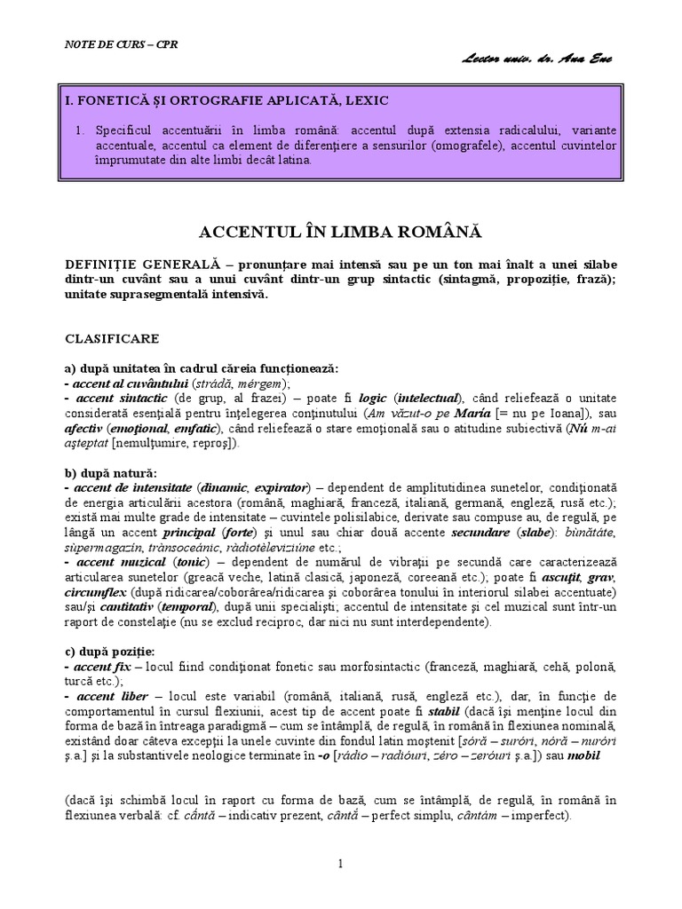 Pastila De Limbă Accentul In Limba Romană Principala Regulă Constă In Absenţa Regulilor