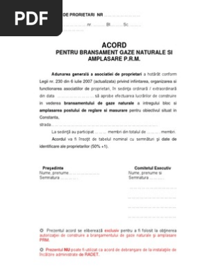 Acord Bransament Si Instalatie De Utilizare Asociatii De Proprietari