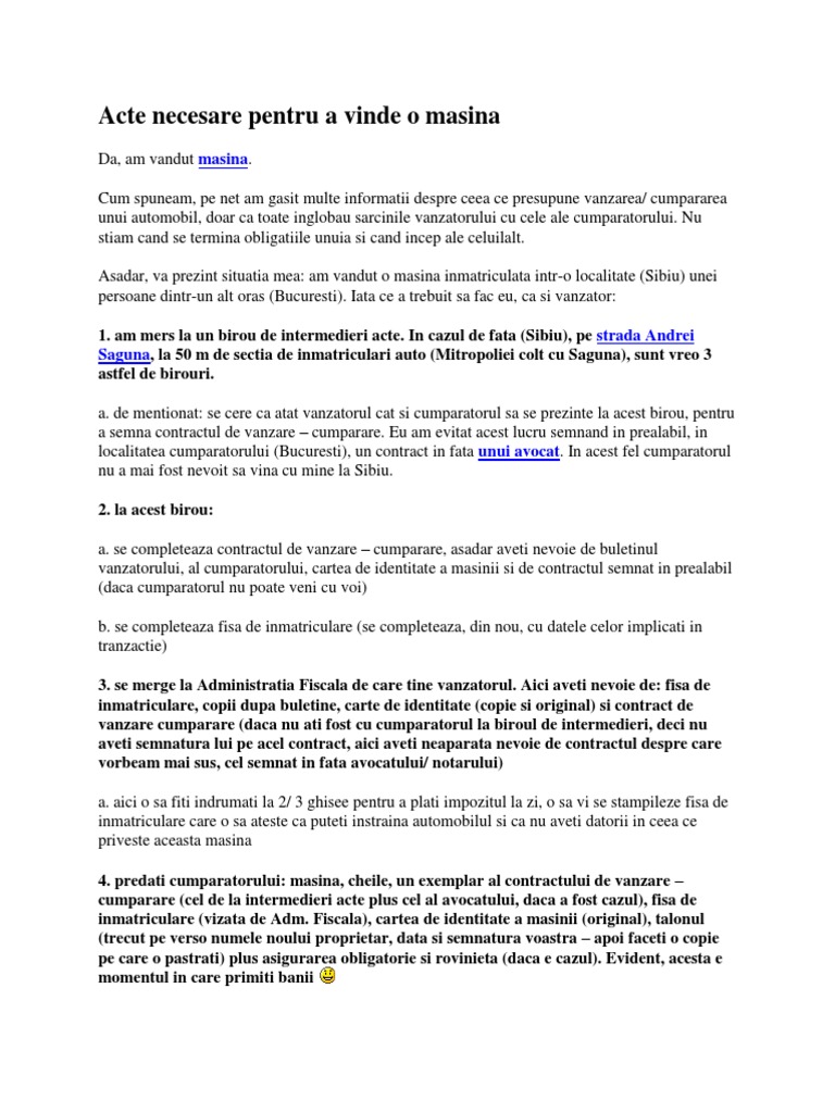 Acte Necesare Pentru A Vinde O Masina