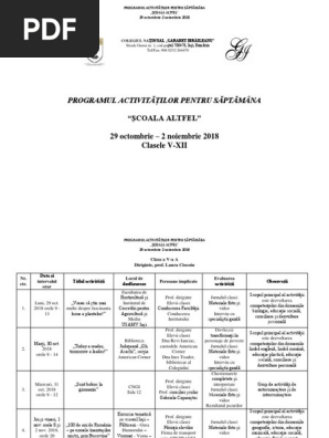Program De Activități Anul școlar 2018 2019 Gradinita Atelier Iasi