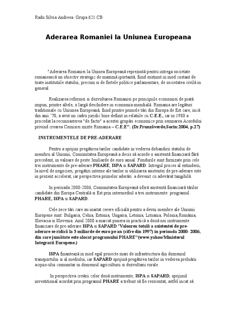Referat Aderarea Romaniei La Ue Drept 187755 Regielive