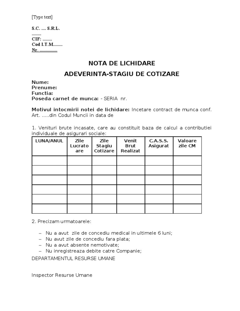 Adeverinta Stagiu Cotizare
