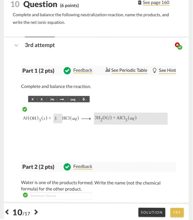 Solved Write The Net Ionic Equation For Al Oh 3 S 3hcl A Chegg Com