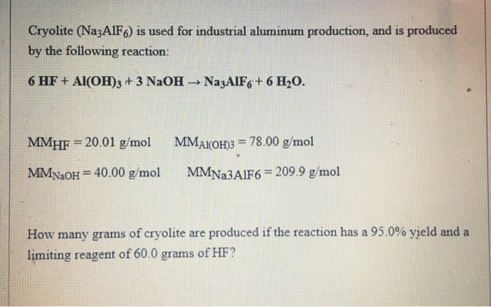 Solved Cryolite Na3alf6 Is Used For Industrial Aluminum Chegg Com