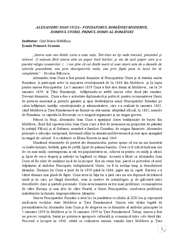 Referat Alexandru Ioan Cuza Istoria Romanilor 442 Regielive