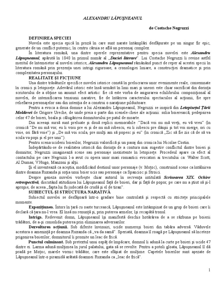 alexandru lapusneanu de costache negruzzi pdf