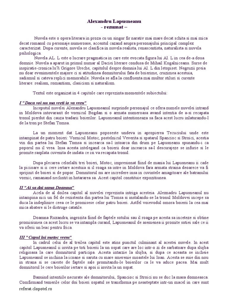 Alexandru Lapusneanu Rezumat Pe Capitole