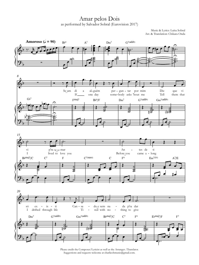 7 Melhores Ideias De Amar Pelos Dois Salvador Sobral Partitura Pag 1 2 Amar Pelos Dois Sobral Salvador