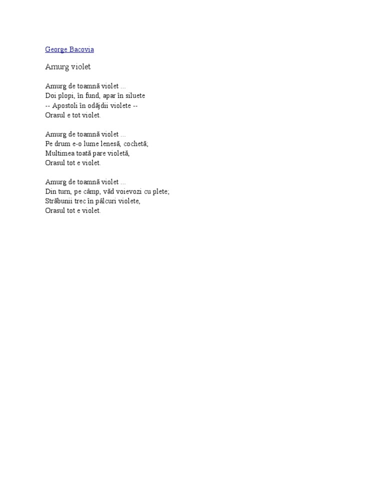 Amurg Violet De George Bacovia Poezii Si Versuri