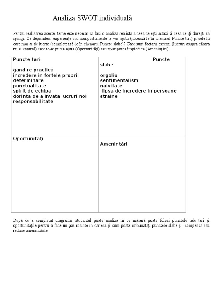Analiza Swot Individuală