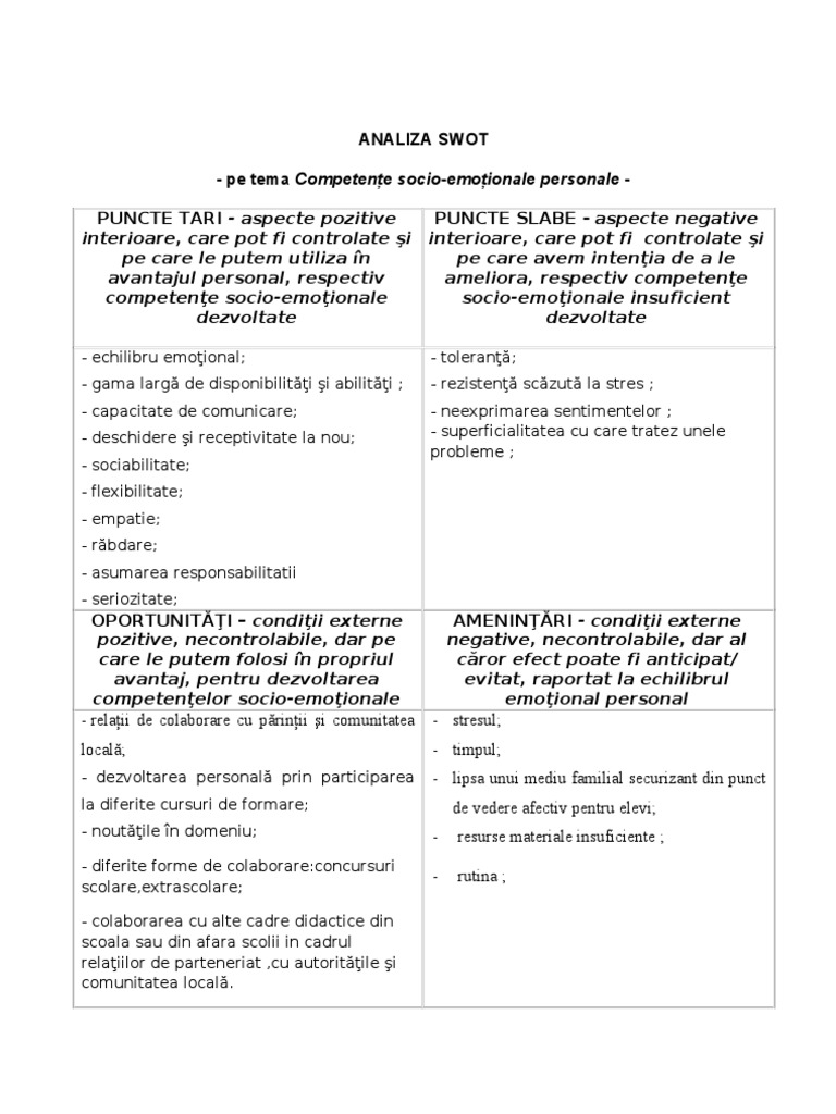 Analiza Swot Personala Model