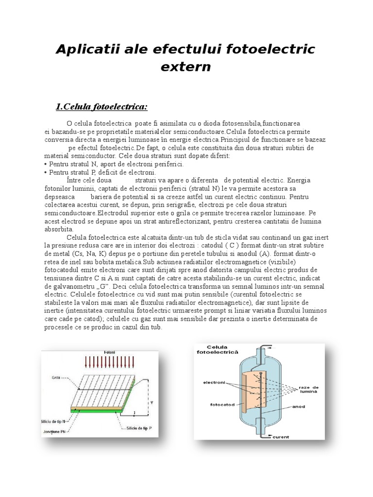 Efectul Fotoelectric Aplicatiile Efectului Fotoelectric Extern