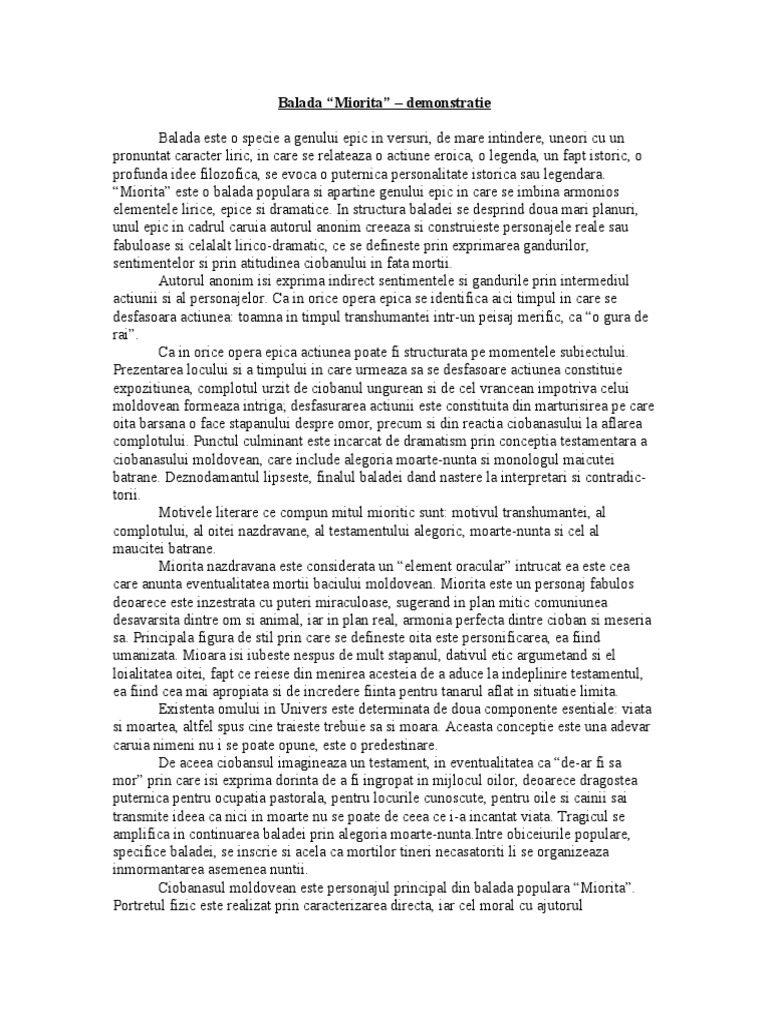 Miorita Argumentare Balada Populara Cel Mult O Pagina De Caiet Studentesc Brainly Ro