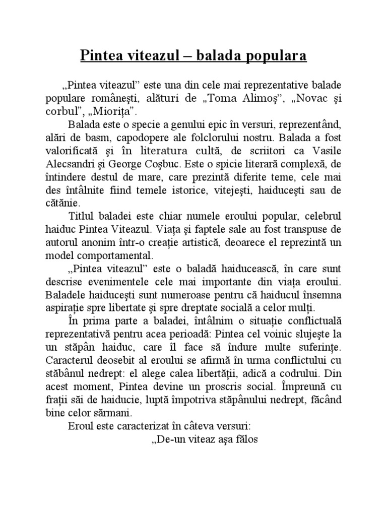 Referat Pintea Viteazul Balada Populara 330827 Graduo