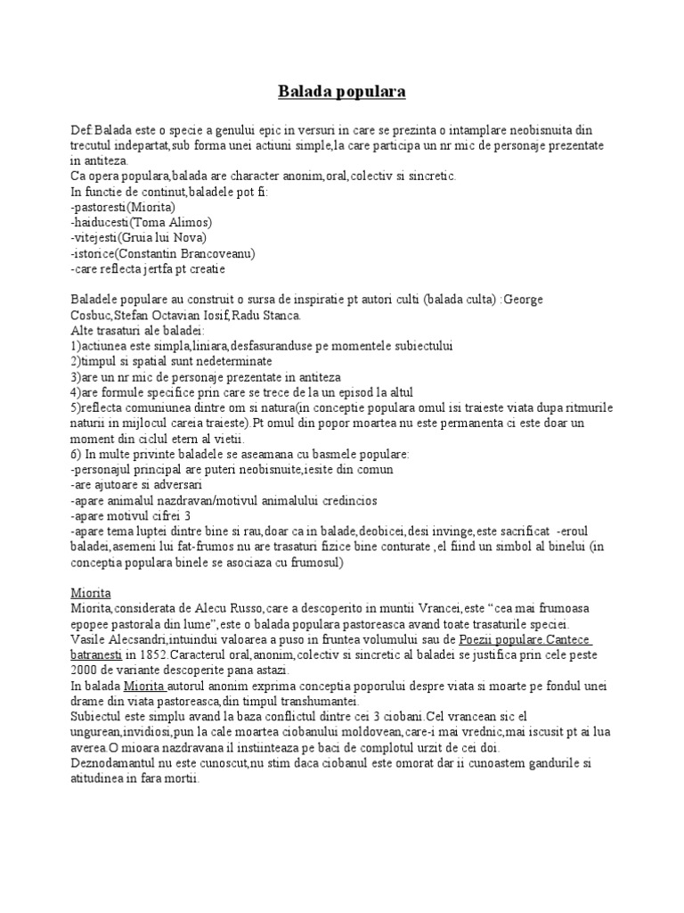 Referat Poetica Baladei Populare Filologie 217270 Regielive