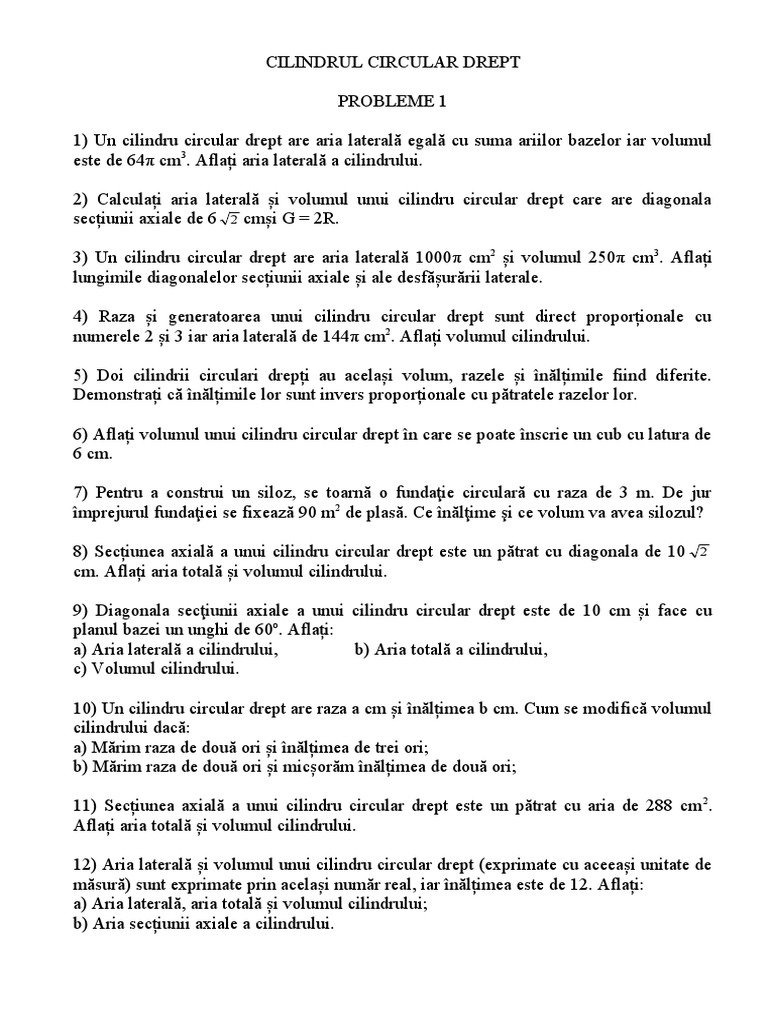Cilindrul Geometrie In Spatiu Arii Si Volume
