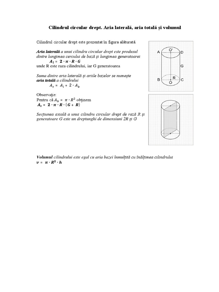 Df diagonala unei fete laterale. Formule corpuri geometrice în spațiu necesare pentru pregătirea examenului de evaluare națională la matematică clasa a 8 a al aria laterala. Completează aici cm verifică exercițiul. H inaltimea cilindrului.