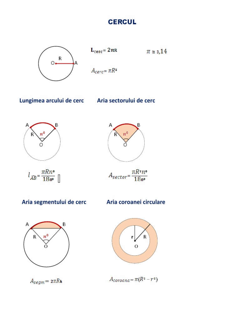 Aria Cercului Lungimea Cercului Lungimea Unui Arc De Cerc Aria Unui Sector De Cerc