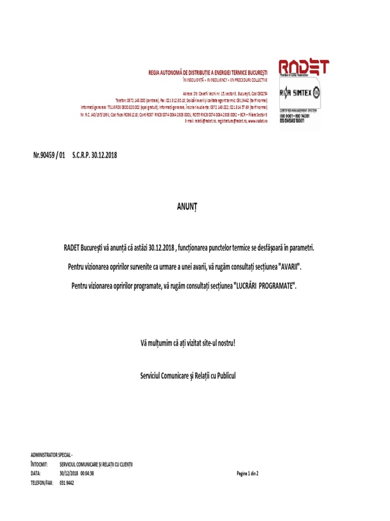 Radet București Astăzi Nu Sunt Avarii Lucrări Programate Dcnews