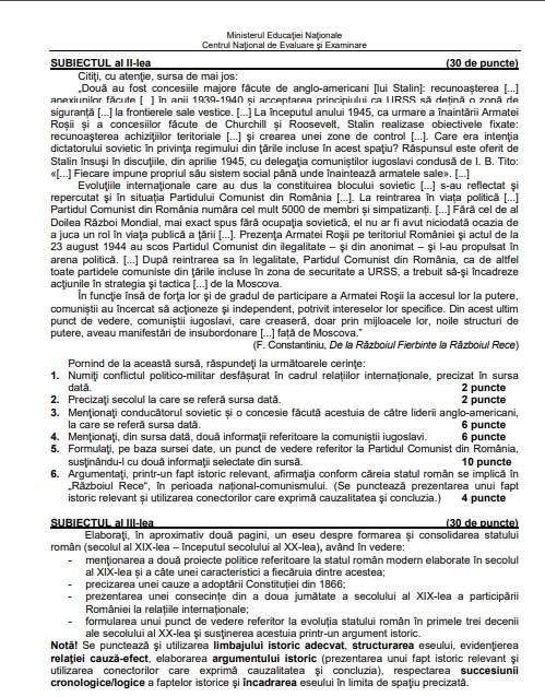 Sesiunea Speciala Bac 2019 Istorie Din 28 05 2019 Subiect Si Barem Proba E C Sursa Edu Ro Jitaruionelblog Pregatire Bac Si Evaluarea Nationala 2020 La Matematica Si Alte Materii Materiale Lectii Formule Exercitii
