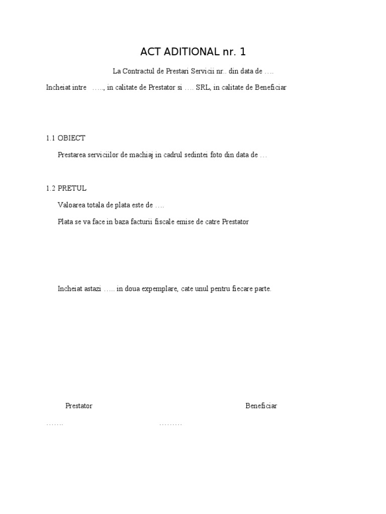 Act Aditional Contract Prestari Servicii Model